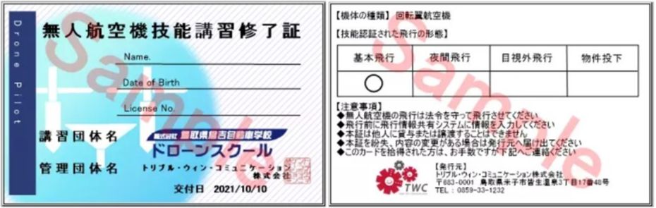 「飛行記録証明書」「無人航空機技能講習修了証」を発行致します。