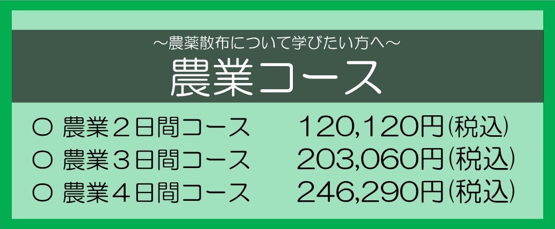 ※農業2日間コースの料金は当校基本コースを卒業された方の料金です。