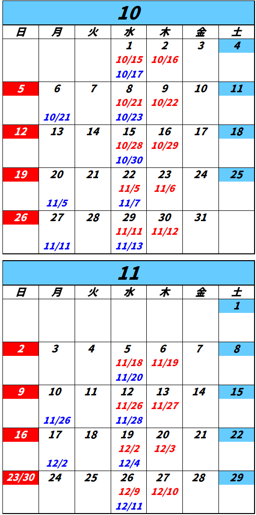 AT車= 10月15日卒業