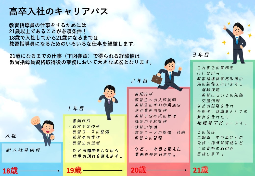学歴・職歴は問いません。教習指導員の資格も必要ありません。 誠意を持ってお客様と向き合える方なら大丈夫! もちろん、資格をお持ちの方や経験者も大歓迎です!!