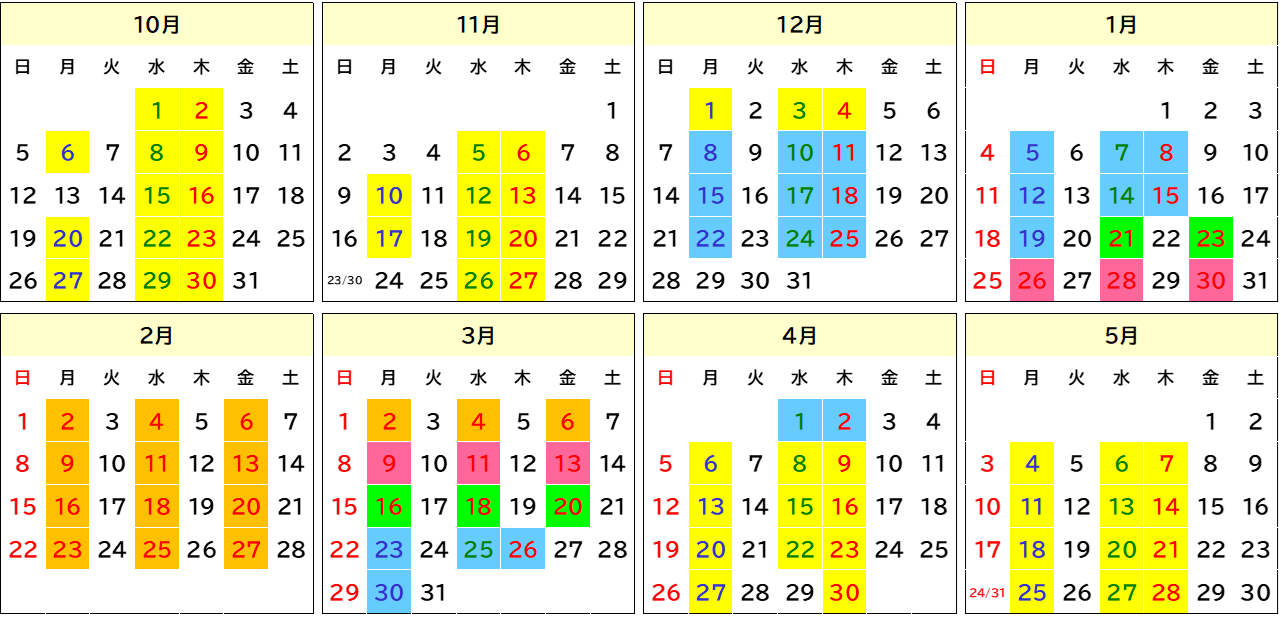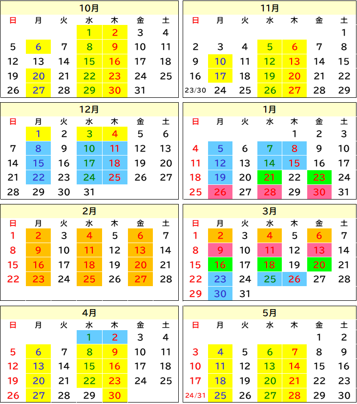 入校日カレンダー(2025年10月〜2026年5月)