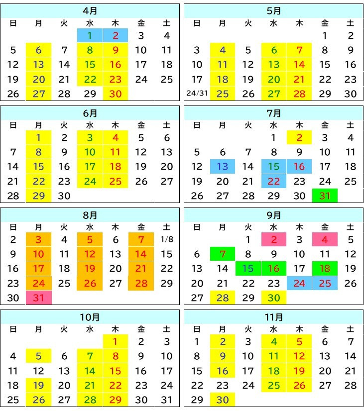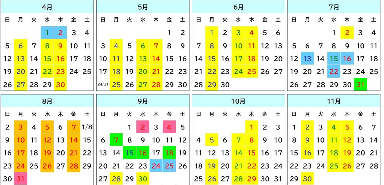 入校日カレンダー(2026年4月〜2026年11月)